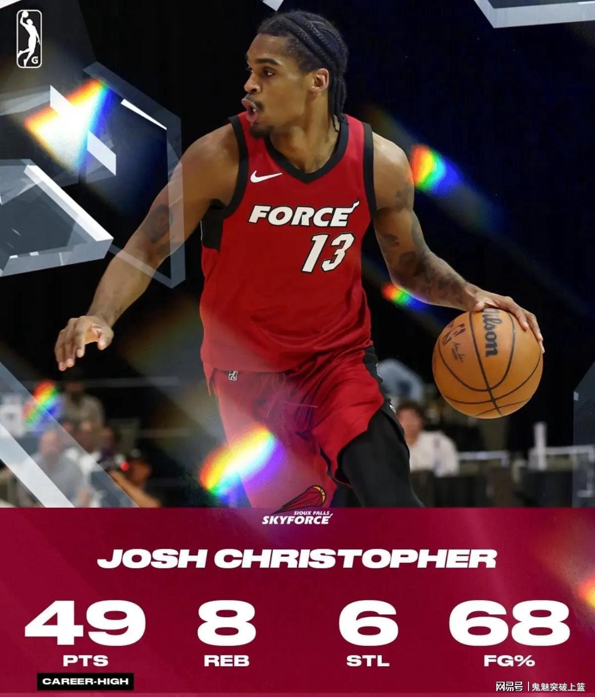 不可否认,约什克里斯托弗的NBA生涯没能取得该有的成功,他甚至可以说是火箭的一次失败选秀!但我们有理由相信如今在发展联盟大杀四方的约什克里斯托弗,有朝一日完全还有机会重新杀回NBA。