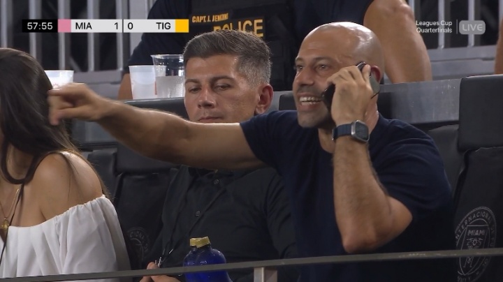 08月21日讯 联盟杯1/4决赛,迈阿密国际迎战老虎大学,下半场,迈阿密国际主帅马斯切拉诺被罚上看台,通过电话指挥比赛。
